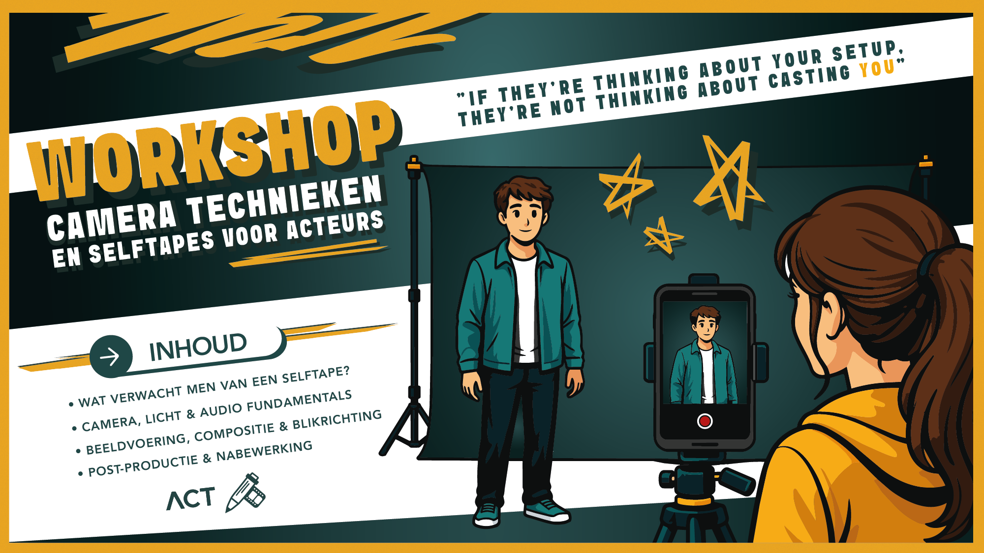 Een hands-on workshop waarin je als acteur leert hoe je technisch scherpere selftapes leert maken. Geen theorie om de theorie, maar direct toepasbare technieken die je castingkansen effectief verhogen.